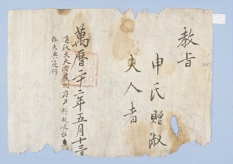 고문서-교령류-고신 정치·행정-임면-고신 82책 영해 도곡 무안박씨 무의공 박의장 종가편Ⅰ-고문서-교령류-추증교지 1594년 박의장 조비 신씨(朴毅長祖妣申氏) 추증교지(追贈敎旨) 국왕:선조 신씨 1594 한성 낱장 1장 종이 한자 82 고문서 1. 교령류 (5) 추 -