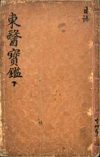 許浚이 宣祖의 명에 따라 우리나라와 中國의 醫書를 모아 엮어 1613년(光海君 5)에 완성한 것.[御醫 忠勤貞亮扈聖功臣 崇祿大夫陽平君 臣許浚 奉敎撰].고서-자부-의가류 종교·풍속-민속-의서 97책 군포 속달 동래정씨 동래부원군 정난종 종가편-고서-자부-의가류 동의보감(東醫寶鑑) -목록(目錄) 하(下) 허준 1613 목판본 선장 全23卷23冊(목록 2卷2冊) 身形藏府圖 사주쌍변 유계 10行21字 삼엽화문어미-상하내 -