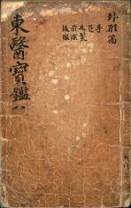 許浚이 宣祖의 명에 따라 우리나라와 中國의 醫書를 모아 엮어 1613년(光海君 5)에 완성한 것.[御醫 忠勤貞亮扈聖功臣 崇祿大夫陽平君 臣許浚 奉敎撰].고서-자부-의가류 종교·풍속-민속-의서 97책 군포 속달 동래정씨 동래부원군 정난종 종가편-고서-자부-의가류 동의보감(東醫寶鑑) -권5 외형편(外形篇) 권지일(卷之一) 허준 1613 목판본 선장 23卷23冊, 目錄 2卷2冊, 共25冊 身形藏府圖 사주쌍변 유계 10行 -