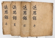 朱熹와 呂祖謙이 周敦頤, 程顥, 程頤, 張載 등 네 학자의 글에서 학문의 중심문제들과 일상생활에 요긴한 부분들을 뽑아 편집한 책.고서-자부-유가류 교육·문화-문학저술 101책 고창 흥덕 평해황씨 황윤석 종가 고문서-고서-자부-유가류 근사록(近思錄) -1 목판본 선장 사주쌍변 유계 10行17字 이엽화문어미-상하내향이엽화문어미 箕山之印 101 고서 자부 자부 3 101_0417 한국 고문서 조사 -