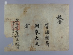 고문서-교령류-고신 정치·행정-임면-고신 5책 안동 천전 의성김씨 천상각파편Ⅰ-고문서-교령류-교지 1693년 김방걸(金邦杰) 고신(告身) -4 국왕:숙종 김방걸 1693 이조 낱장 1장 종이 한자 5 고문서 1. 교령류 (1) 교지 교지 교지 47 24 005_00 -