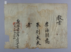 고문서-교령류-녹패 정치·행정-임면-녹패 9책 부여·강화·영주 창원황씨편-고문서-교령류-녹패 1696년 황하영(黃夏英) 녹패(祿牌) 황하영 병조 1696 한성 낱장 1장 종이 한자 9 고문서 1. 교령류 (9) 녹패 녹패 녹패 4 83 009_0157 출판정보:『고 -