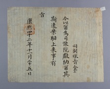 고문서-교령류-녹패 정치·행정-임면-녹패 10책 장서각편Ⅰ-고문서-교령류-녹패 1701년 연잉군(延礽君) 이금(李昑) 녹패(祿牌) 연잉군 이금 이조 1701 한성 낱장 1장 종이 한자 10 고문서 1. 교령류 (15) 녹패 녹패 녹패 2 168 010_0163 출판 -