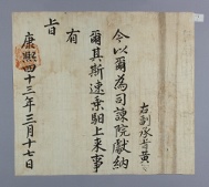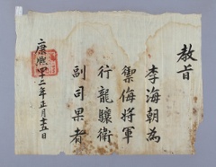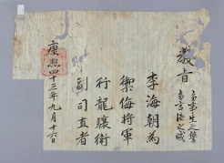 고문서-교령류-유지 국왕·왕실-교령-유지 55책 제천 한수 연안이씨편-고문서-교령류-유지 1704년 이해조(李海朝) 유지(有旨) -6 국왕:숙종 이해조 1704 한성 낱장 1장 종이 한자 55 고문서 1. 교령류 (4) 유지 유지 유지 9 22 055_0013 출판 -