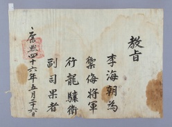 고문서-교령류-차첩 정치·행정-임면-차첩 110책 제주 어도 진주강씨·조천 김해김씨·구좌 동래정씨 고문서-고문서-진주강씨-강수황 후손가-교령류-차첩 차첩(差帖) -14 제주목사 이규성 1707 제주특별자치도 제주시 애월읍 봉성리 110 고문서 진주강씨 교령류 차첩 -