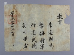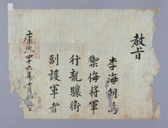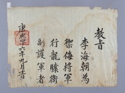 고문서-교령류-유지 국왕·왕실-교령-유지 55책 제천 한수 연안이씨편-고문서-교령류-유지 1706년 이해조(李海朝) 유지(有旨) 국왕:숙종 이해조 1706 한성 낱장 1장 종이 한자 55 고문서 1. 교령류 (4) 유지 유지 유지 15 25 055_0019 출판정보 -