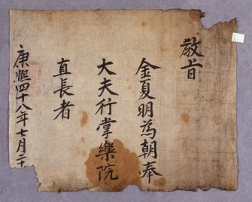 고문서-교령류-유지 국왕·왕실-교령-유지 55책 제천 한수 연안이씨편-고문서-교령류-유지 1710년 이해조(李海朝) 유지(有旨) 국왕:숙종 이해조 1710 한성 낱장 1장 종이 한자 55 고문서 1. 교령류 (4) 유지 유지 유지 16 25 055_0020 출판정보 -