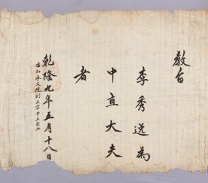 고문서-교령류-고신 정치·행정-임면-고신 61책 예산 한곡 한산이씨 수당 고택편-고문서-교령류-고신 1744년 이수일(李秀逸) 고신(告身) -1 국왕:영조 이수일 1744 낱장 1장 종이 한자 61 고문서 1. 교령류 (5) 고신 고신 고신 31 26 061_005 -