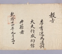 고문서-교령류-고신 정치·행정-임면-고신 61책 예산 한곡 한산이씨 수당 고택편-고문서-교령류-고신 1749년 이우명(李宇溟) 고신(告身) 이우명 이조 1749 낱장 1장 종이 한자 61 고문서 1. 교령류 (5) 고신 고신 고신 37 29 061_0056 출판정보 -