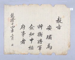 고문서-교령류-유지 국왕·왕실-교령-유지 98책 남원 안터 순흥안씨 사제당 안처순 종가편-고문서-교령류-유지 1748년 안극효(安克孝) 유지(有旨) 국왕:영조 안극효 1748 한성 낱장 1 종이 한자 98 고문서 1. 교령류 1. 유지 유지 유지 1 43 098_0 -