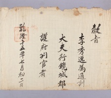 고문서-교령류-고신 정치·행정-임면-고신 79책 구미 옥산 인동장씨 여헌 장현광 종가편-고문서-교령류-고신 1751년 장수륜(張壽崙) 고신(告身) 장수륜 이조 1751 한성 낱장 1장 종이 한자 79 고문서 1. 교령류 (3) 고신 고신 고신 185 120 079_ -