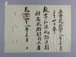 고문서-교령류-녹패 정치·행정-임면-녹패 55책 제천 한수 연안이씨편-고문서-교령류-녹패 1783년 이홍원(李弘源) 녹패(祿牌) 이홍원 병조 1783 한성 낱장 1장 종이 한자 55 고문서 1. 교령류 (8) 녹패 녹패 녹패 10 86 055_0126 출판정보:『고 -