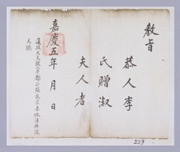 고문서-교령류-고신 정치·행정-임면-고신 103책 상주 연안이씨 이만부 종가 고문서-고문서-교령류-고신 1800년 유인(孺人) 채씨(蔡氏) 추증교지(追贈敎旨) 국왕:정조 채씨 1800 한성 낱장 1장 종이 한자 103 고문서 1. 교령류 교령류 고신 추증교지 103 -