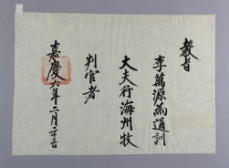 고문서-교령류-고신 정치·행정-임면-고신 55책 제천 한수 연안이씨편-고문서-교령류-고신 1804년 이만원(李萬源) 고신(告身) 국왕:순조 이만원 1804 한성 낱장 1장 종이 한자 55 고문서 1. 교령류 (7) 고신 고신 고신 73 68 055_0099 출판정보 -