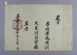 고문서-교령류-고신 정치·행정-임면-고신 55책 제천 한수 연안이씨편-고문서-교령류-고신 1819년 이준수(李俊秀) 고신(告身) 국왕:순조 이준수 1819 한성 낱장 1장 종이 한자 55 고문서 1. 교령류 (7) 고신 고신 고신 76 69 055_0102 출판정보 -