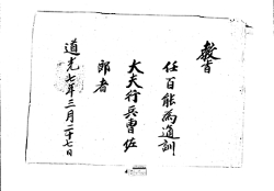고문서-교령류-고신 정치·행정-임면-고신 71책 이천 부발 풍천임씨·양주 광주정씨편-고문서-풍천임씨-교령류-고신 1827년 임백능(任百能) 고신(告身) -3 임백능 이조 1827 한성 낱장 1장 종이 한자 71 고문서 1. 교령류 (5) 고신 고신 46 55 071 -