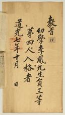 고문서-교령류-백패 정치·행정-과거-백패 129책 강릉 전주이씨 선교장 고문서Ⅰ-고문서-교령류-백패 1827년 이봉구(李鳳九) 생원 백패(生員白牌) 순조 이봉구 1827 강릉시 129 교령류 고문서 교령류 백패 백패 02 강릉 전주이씨 선교장 효령대군 후손가 율곡국 -
