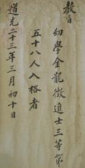 고문서-교령류-백패 정치·행정-과거-백패 114책 제주 진주강씨·곡산강씨·김해김씨·경주김씨·제주고씨·동래정씨 고문서-고문서-김해김씨-김용징 후손가-교령류-백패 1843년 김용징(金龍徵) 진사 백패(進士白牌) 헌종 김용징 1843 제주특별자치도 제주시 애월읍 납읍리 -