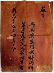 고문서-교령류-홍패 정치·행정-과거-홍패 114책 제주 진주강씨·곡산강씨·김해김씨·경주김씨·제주고씨·동래정씨 고문서-고문서-곡산강씨-강만식 후손가-교령류-홍패 1845년 강만식(康萬埴) 무과 홍패(武科紅牌) 헌종 강만식 1845 제주시 조천읍 조천리 114 고문서 -