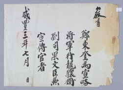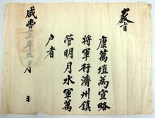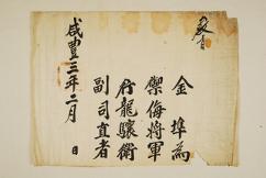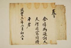 고문서-교령류-차첩 정치·행정-임면-차첩 114책 제주 진주강씨·곡산강씨·김해김씨·경주김씨·제주고씨·동래정씨 고문서-고문서-진주강씨-강익진 후손가-교령류-차첩 차첩(差帖) -21 제주목사 1854 제주특별자치도 제주시 애월읍 봉성리 114 고문서 진주강씨 강익진 후 -
