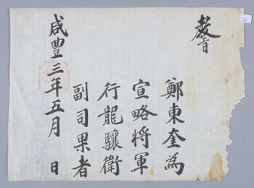 고문서-교령류-고신 정치·행정-임면-고신 88책 상주 우산 진주정씨 우복 정경세 종가편-고문서-교령류-고신 1853년 정동규(鄭東奎) 고신(告身) -3 국왕:철종 정동규 1853 한성 낱장 1장 종이 한자 88 고문서 1. 교령류 (3) 고신 고신 고신 197 10 -