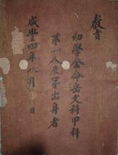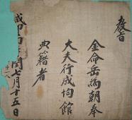 고문서-교령류-홍패 정치·행정-과거-홍패 114책 제주 진주강씨·곡산강씨·김해김씨·경주김씨·제주고씨·동래정씨 고문서-고문서-김해김씨-김용징 후손가-교령류-홍패 1854년 김명악(金命岳) 문과 홍패(文科紅牌) 철종 김명악 1854 제주특별자치도 제주시 애월읍 납읍리 -