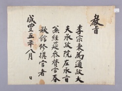 고문서-교령류-고신 정치·행정-임면-고신 61책 예산 한곡 한산이씨 수당 고택편-고문서-교령류-고신 1855년 이종병(李宗秉) 고신(告身) -08 국왕:철종 이종병 1855 낱장 1장 종이 한자 61 고문서 1. 교령류 (5) 고신 고신 고신 132 76 061_0 -