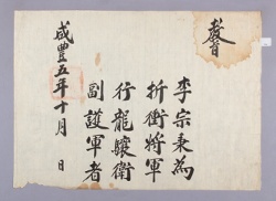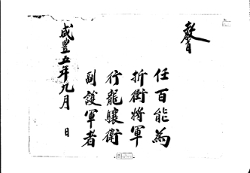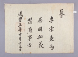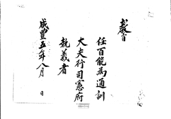 고문서-교령류-차첩 정치·행정-임면-차첩 114책 제주 진주강씨·곡산강씨·김해김씨·경주김씨·제주고씨·동래정씨 고문서-고문서-진주강씨-강익진 후손가-교령류-차첩 차첩(差帖) -17 제주목사 1855 제주특별자치도 제주시 애월읍 봉성리 114 고문서 진주강씨 강익진 후 -