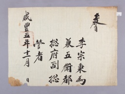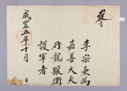 고문서-교령류-고신 정치·행정-임면-고신 61책 예산 한곡 한산이씨 수당 고택편-고문서-교령류-고신 1855년 이종병(李宗秉) 고신(告身) -05 국왕:철종 이종병 1855 낱장 1장 종이 한자 61 고문서 1. 교령류 (5) 고신 고신 고신 129 75 061_0 -