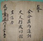 고문서-교령류-고신 정치·행정-임면-고신 114책 제주 진주강씨·곡산강씨·김해김씨·경주김씨·제주고씨·동래정씨 고문서-고문서-김해김씨-김용징 후손가-교령류-고신 고신(告身) -42 철종 1855 제주특별자치도 제주시 애월읍 납읍리 114 고문서 김해김씨 김용징 후손가 -