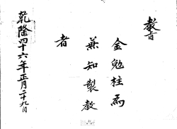 敎旨 7 1781年(正祖 5) 敎旨 金勉柱爲 兼知製敎 者 乾隆四十六年正月二十九日 G002+AKS+KSM-XA.1781.1111-20101008.B007a_008_00007_XXX-TXT -