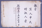 敎旨 宜人申氏 贈淑人者 乾隆五十五年七月 日 嘉善大夫同知中樞府事廣成君安鼎福曾祖妣 依法典追 贈 G002+AKS+KSM-XA.1790.0905-20190131.B006a_000_B01900046-TXT -
