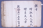 敎旨 42 1790年(正祖 14) 敎旨 贈淑夫人成氏 贈貞夫人者 乾隆五十五年七月日 【嘉善大夫同知中樞府事廣成君安鼎福妻依法典從夫】 【 職】 G002+AKS+KSM-XA.1790.1111-20101008.B006a_008_00042_XXX-TXT -