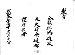 敎旨 11 1792年(正祖 16) 敎旨 金勉柱爲通政 大夫行安邊都 護府使者 乾隆五十七年十二月十八日 G002+AKS+KSM-XA.1792.1111-20101008.B007a_008_00011_XXX-TXT -