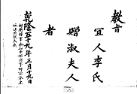 敎旨97 1794(正祖 18) 敎旨 宜 人 李 氏 贈 淑 夫 人 者 乾隆五十九年三月十九日 【 折衝將軍僉知中樞府事柳宗春妻 依法典從夫職】 G002+AKS+KSM-XA.1794.1111-20101008.B010a_015_00097_XXX-TXT -