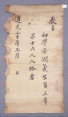 敎牒 9 1839年(憲宗 5) 吏曹道光十九年六月 二十九日奉 敎進士安孝根爲 通德郞行 翼陵參奉者 道光十九年六月 日 【行判書臣趙〔押〕 叅判 叅議 正郞】 【 佐郞】 G002+AKS+KSM-XA.1839.1111-20101008.B006a -