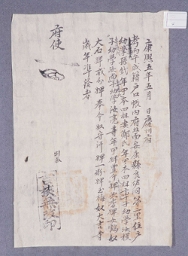 고문서-증빙류-입안 법제-소송판결공증-입안 110책 제주 어도 진주강씨·조천 김해김씨·구좌 동래정씨 고문서-고문서-진주강씨-강수황 후손가-증빙류-입안 결송입안(決訟立案) -5 1663 제주특별자치도 제주시 애월읍 봉성리 110 고문서 진주강씨 증빙류 결송입안 5 결 -