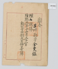 고문서-증빙류-봉급증서 정치·행정-임면-봉급증서 86책 서산 대교 경주김씨 충민공 김홍익 후손가편-고문서-학주 후손가(김택영)-교령류-한말봉급문서 1907년 김동일(金東鎰) 봉급증서(俸給證書) 김동일 훈일등내부대신 1907 한성 낱장 1장 종이 한자 86 고문서 학 -