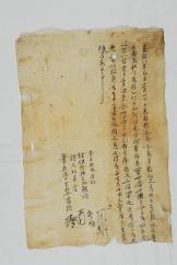 1530년(중종25)시노 김명이 지난해 산 논을 다시 물리는 토지거래 계약서.고문서-명문문기류-토지매매명문 경제-매매교역-토지매매명문 41책 안동 주촌 진성이씨 경류정편Ⅰ-고문서-명문문기류-토지매매명문 1530년 김명 방매 토지매매명문 김명1530년(중종25) 寺奴 金命은 지난 해 買得하였던 논이 경작이 쉽지 않아 다시 回換하였다. 明文의 -