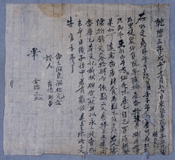 고문서-명문문기류-토지매매명문 경제-매매교역-토지매매명문 3책 해남 연동 해남윤씨 녹우당편-고문서-명문문기류-토지매매명문 1737년 승(僧) 조평(照平) 토지매매명문(土地賣買明文) 조평 정만추 해남현 일도면 1737 점련 1장 종이 3 고문서 9. 명문문기류 가. -
