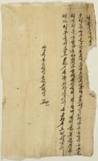 고문서-명문문기류-배지 경제-매매교역-배지 51책 경주 이조 경주최씨·용산서원편Ⅱ-고문서-명문문기류-배지 1747년 수노(首奴) 용이(龍伊) 배지(牌旨) 용이 용산서원 1747 경주부 내남면 구조리 낱장 1장 종이 한자, 이두 51 고문서 5. 명문문기류 (7) 배 -