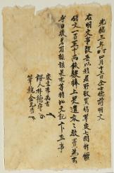 고문서-명문문기류-토지매매명문 경제-매매교역-토지매매명문 41책 안동 주촌 진성이씨 경류정편Ⅰ-고문서-명문문기류-토지매매명문 1877년 진성이씨(眞城李氏) 표문(表文) 진성이씨 1877 합철 1장 종이 한자, 이두 41 고문서 5. 명문문기류 (3) 토지매매명문 토 -