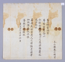 고문서-서간통고류-혼서 종교·풍속-관혼상제-혼서 79책 구미 옥산 인동장씨 여헌 장현광 종가편-고문서-서간통고류-혼서 1790년 장윤종(張胤宗) 혼서(婚書) -2 장윤종 유범휴 1790 낱장 1장 종이 한자 79 고문서 6. 서간통보류 (1) 혼서 혼서 혼서 7 2 -