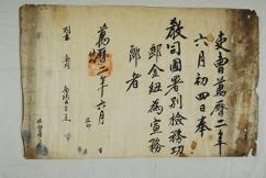 고문서-교령류-고신 정치·행정-임면-고신 109책 고령 선산김씨 김종직 종가 고문서-고문서-교령류-고신 고신(告身) -34 이조 1574 합가리 109 고문서 교령류 고신 34 고신 39 고령 선산김씨 점필재 김종직 종가 대가야박물관 ◦ 宣務郞으로 임명