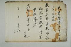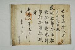 고문서-교령류-고신 정치·행정-임면-고신 109책 고령 선산김씨 김종직 종가 고문서-고문서-교령류-고신 고신(告身) -37 이조 1580 합가리 109 고문서 교령류 고신 37 고신 42 고령 선산김씨 점필재 김종직 종가 대가야박물관 ◦ 承訓郞·行金海敎授 -