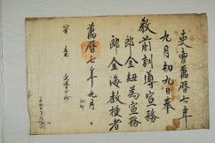 고문서-교령류-고신 정치·행정-임면-고신 109책 고령 선산김씨 김종직 종가 고문서-고문서-교령류-고신 고신(告身) -36 이조 1579 합가리 109 고문서 교령류 고신 36 고신 41 고령 선산김씨 점필재 김종직 종가 대가야박물관 ◦ 宣敎郞·金海敎授로 -