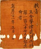 고문서-교령류-백패 정치·행정-과거-백패 72책 남원·구례 삭녕최씨편Ⅰ-고문서-교령류-백패 1603년 최연(崔葕) 진사 백패(進士白牌) 국왕:선조 최연 1603 한성 낱장 1장 종이 한자 72 고문서 1. 교령류 (4) 백패 백패 백패 2 17 072_0018 출판 -