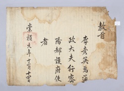 고문서-교령류-은사문 국왕·왕실-교령-은사문 3책 해남 연동 해남윤씨 녹우당편-고문서-교령류-은사장 1629년 윤선도(尹善道) 은사장(恩賜狀) -08 윤선도 대전 한성 1629 첩장 1장 종이 한자 3 고문서 교령류 교령류 은사장 은사장 14 16 003_0112 -