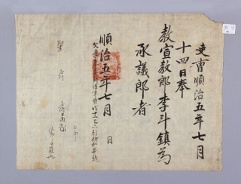 고문서-교령류-고신 정치·행정-임면-고신 93책 성주 명곡 벽진이씨 완석정 이언영 종가편-고문서-교령류-교첩 1648년 이두진(李斗鎭) 고신(告身) -5 이두진 이조 1648 한성 낱장 1장 종이 한자 93 고문서 1. 교령류 (4) 고신(교첩) 교첩 고신(교첩) -