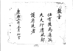 고문서-교령류-차첩 정치·행정-임면-차첩 110책 제주 어도 진주강씨·조천 김해김씨·구좌 동래정씨 고문서-고문서-진주강씨-강수황 후손가-교령류-차첩 차첩(差帖) -09 제주목사 김수익 1667 제주특별자치도 제주시 애월읍 봉성리 110 고문서 진주강씨 교령류 차첩 -